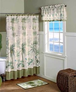 Tropical Island Palm Tree Seaside Beach Shore Shower Curtain & Hook Rug Bath Set
