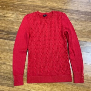 Talbots Cable Knit Crewneck Sweater Womens XS Button Accent Red Crew Neck Work