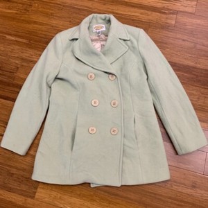 Vintage Talbots Wool Cashmere Pea Coat Women 6 Mint Green Double Breasted Jacket