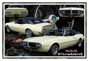 We specialize in custom designed prints of classic and muscle cars, motorcycles, race cars - virtually anything with wheels. We can also design a personalized print for you of your favorite ride. I will ship internationally