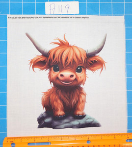 8"x8" Baby Highland Cow 100% Cotton Fabric Panel Sewing Quilting Block A119