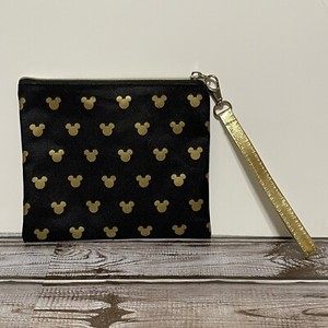 Disney Mickey Mouse Gold & Black Pouch w/ Detachable Gold Wristlet