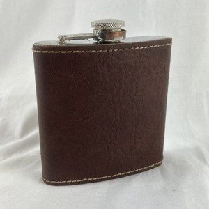 Stainless Steel Whiskey Hip Flask 7oz Brown Leather Wrap Screw Off Top
