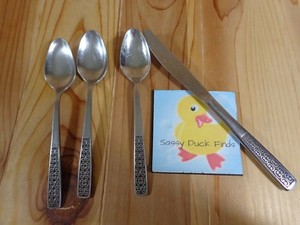 Pageant Harvest Flatware 2 TEASPOONS 2 KNIVES Stainless Japan MC Modern Vintage