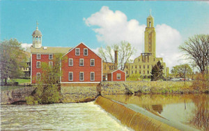 Vintage Rhode Island Chrome Postcard Pawtucket Slater Mill and City Hall