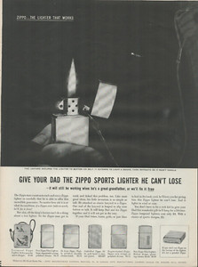 1959 Zippo Lighter Give Dad Sports He Can't Lose Working Grandfather Print Ad