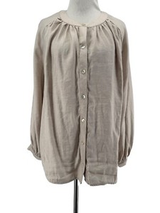 Pomander Place Tuckernuck Women's Tan Long Sleeve Button-Up Shirt Blouse Size XL