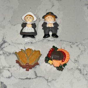Set Of 4 Thanksgiving Button Covers, Pilgrims, Cornucopia, Maize,