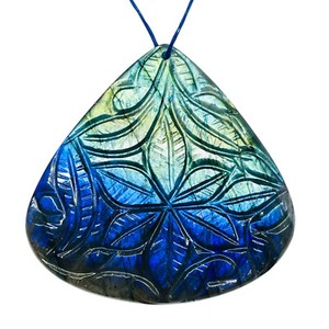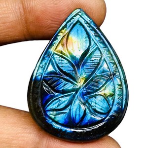 63.00 Cts Natural Carved Labradorite 38x29mm Pear Flashy Pendant Size Gemstone S$ 23.20Was: S$ 57.98
