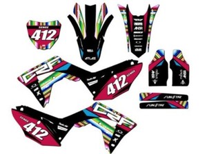 Quality graphics, condition perfect, great price, and looks beautiful on my grandsons, 2009 KX 100.