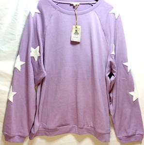 Easel Los Angeles Sweatshirt Large NWT | Lilac Purple Star Sleeve Pullover Top