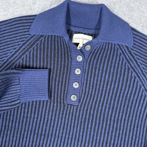 Mara Hoffman Sweater Womens Small Blue Juliana Oversized Ribbed Collar Polo Wool
