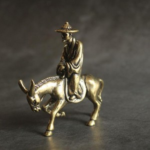 Japanese Copper Craft Incense Lid Rest โ Monk on Donkey Tea Ceremony Ornament
