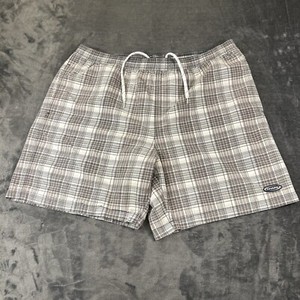 Chaps Board Shorts Mens Extra Large Gray White Plaid Beach Drawstring Swimwear