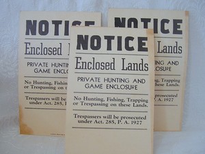 3 Vintage NOTICE Enclosed Land Signs No Hunting Fishing Trapping Or Trespassing