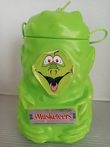 3 Musketeers Vintage Green Blow Mold Halloween Candy Pail Bucket 1990 With Lid