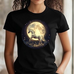 T-Shirt Frauen Einhorn an Vollmond Motiv Baumwolle Größe XS bis 3XL