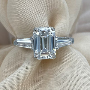 4 Ct Emerald-Cut VS1 Lab Grown Diamond Three Stone Wedding Ring 14k White Gold