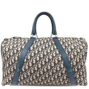 Authentic Christian Dior Trotter Boston Bag Canvas Leather Beige Navy F/S