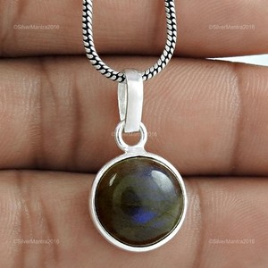 Round Labradorite Gemstone Birthday Handmade Bezel Pendant Jewelry 925 Silver