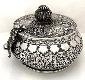 Large Oval Asian Silver Betel or Spice Box Pierced and Ornate 19 oz