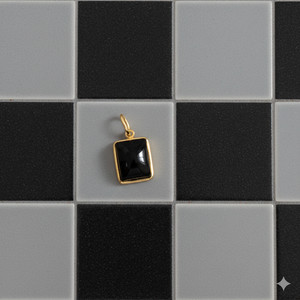 14K Solid Yellow Gold Charm Pendant, Genuine Black Onyx Handmade Pendant