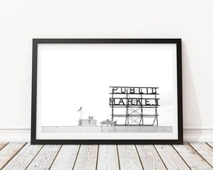 Seattle Washington - Public Fish Market Sign Black & White Photography Print