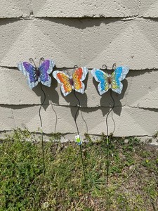 NEW Set/3 Tin Metal Butterflies Garden Decor Purple Orange Blue
