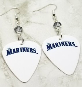 MLB Mariners Guitar Pick Earrings with Charm and Swarovski Crystal Dangles