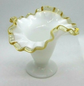Vintage Posey/BUD VASE/Bowl WHITE MILK GLASS, Ruffled EDGE