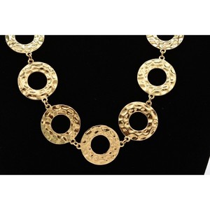 Vintage Chunky Circle Linked Necklace Pebbled Heavy Linked Gold Chain 80s Bin3C