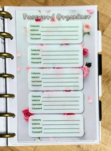 Password Organizer Dashboard Insert for use with the Mini Happy Planner-