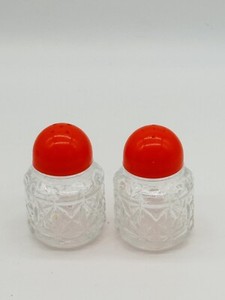 Glass Salt & Pepper Shakers Removable Plastic Cover Tops Lids Red Yellow