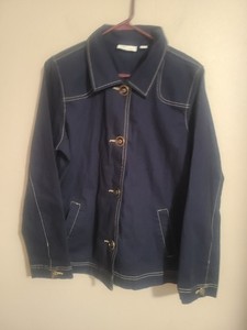 Denim and Co. Women's M Navy Big Button Jacket - 97% Cotton -Contrast Stitching
