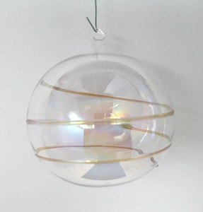 Hand Blown Clear Glass Iridescent Ornament Gold Ribbed Swirl Christmas 4"