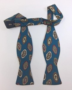 R Hanauer Bow Self Tie 100% Silk Green Paisley Luxury Hand Made Made In USA