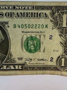 Three 0s In A Row Four Of A Kind 0s Two Dollar Bill Fancy Serial Number $2