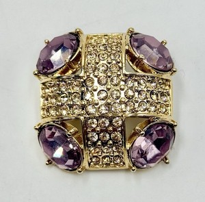 Vintage Brooch Monet Clear Rhinestones Purple Rhinestones Cross Design Square