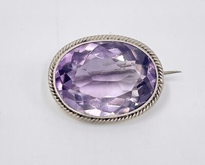 Antique Brooch 800 Silver Genuine Amethyst 18.4mm Markers Mark Faceted