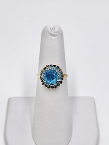 Vintage Plainville Stock Co. Past Ring 10k Yellow Gold Blue Glass Sz 5.25