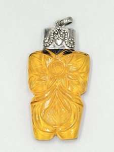 Vintage Pendant Pressed Glass Amber Color Flower Thick