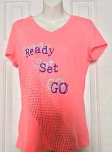 Tek Gear medium short sleeve v neck athletic Graphic shirt Ready Set Go