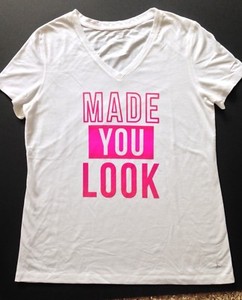 Danskin Now Women L Large 12-14 Semi Fitted Made You Look Shirt V Neck Top White