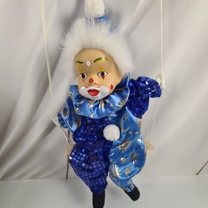 Vintage Circus Clown Doll Porcelain Head String Marionette Puppet on Swing