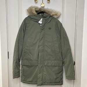 Adidas PAD Fur Hood Parka Jacket Puffer Hooded Zip Men's Sz S Base Green GE1313
