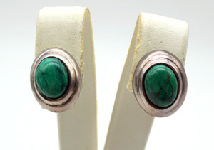 Vintage Sterling Silver Green Malachite Oval Stud Earrings Signed Dellapino