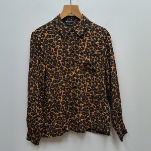 Whistles Tiger/Leopard Print Long Sleeve Collared Brown & Black Top Viscose UK 8