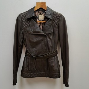 Ted Baker Brown Belted Cuir Leather Jacket No Size