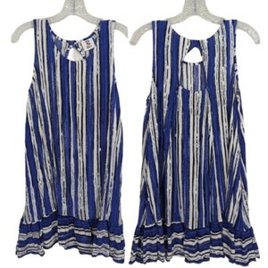 Bali Blue & White Striped Sleeveless Keyhole Back Mini summer dress sz M