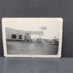 Vintage Photo Chevron Gas Station Garage 1952 Black & White OOAK 5" x 3.5"